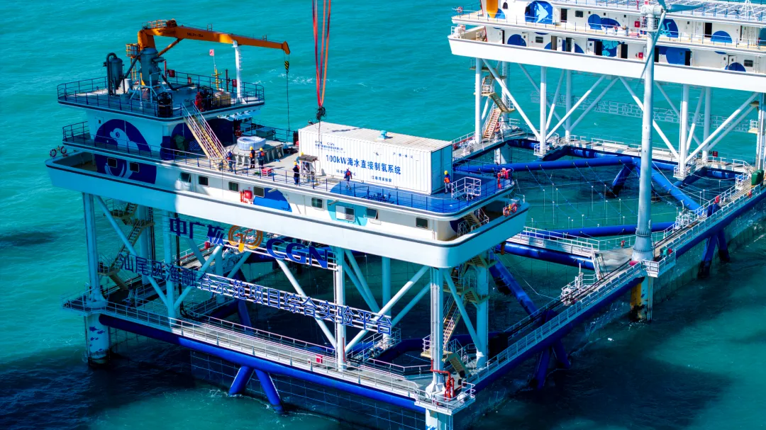 12月23日,中广核可再生能源孤网海水直接制氢系统(以下简称中广核制氢系统)海上试验样机在中广核汕尾海上综合实验平台(以下简称汕尾实验平台)完成安装,正式启动海上试验,标志着汕尾实验平台科研功能正式启用。该系统由中广核与深圳清华大学研究院联合研发,以汕尾实验平台配套建设的风电、光伏发电作为电源进行海水制氢。