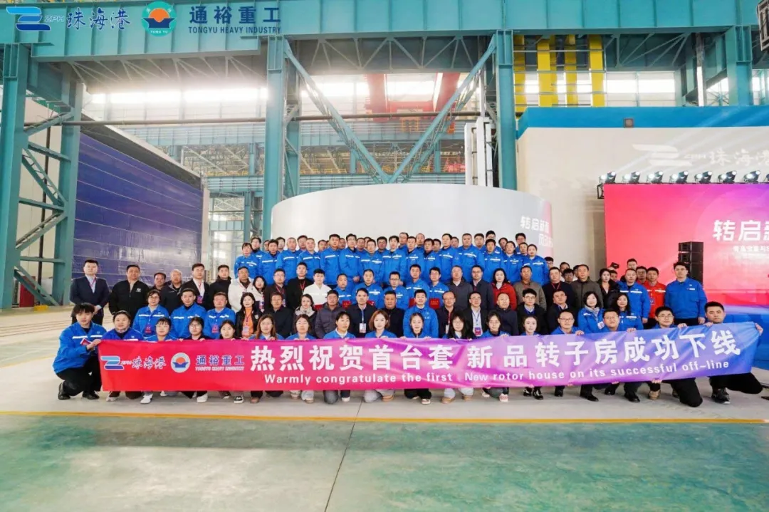 此次下线的首台套14MW风电转子房产品是通裕重工大型海上风电结构件项目的首件成套产品。转子房是风电直驱机型的核心部件,产品直径大,结构复杂,生产难度大,主要用于海外风电市场,具有较高的附加值。在通裕重工技术和生产团队密切配合下,攻克了大规格结构件焊接、设备和工艺磨合等瓶颈,为通裕重工未来风电结构件的产业化奠定了坚实的基础。