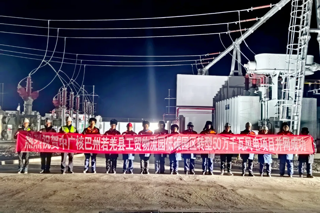 2024年12月29日,中广核巴州若羌县工贸物流园低碳园区转型50万千瓦风电项目成功并网发电。