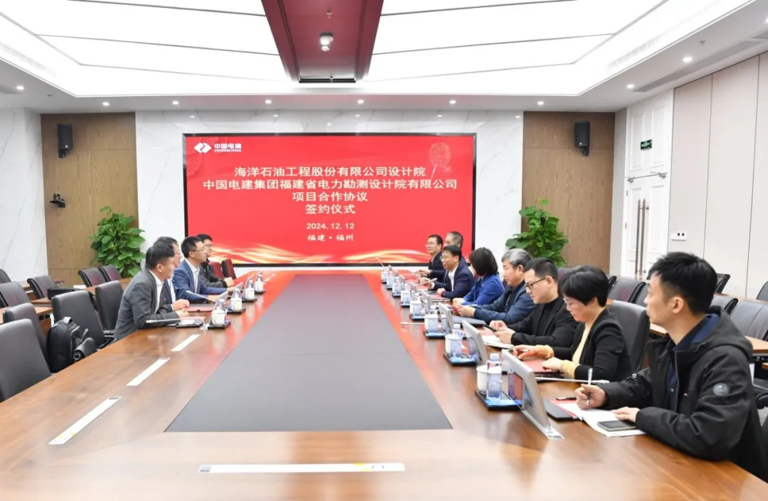 据中国电建福建院消息,近日,中国电建集团福建省电力勘测设计院有限公司与海洋石油工程股份有限公司设计院举行了项目合作签约会。