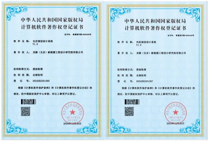 近日,龙源电力设计院自主研发的《风机规划设计系统V1.0》《光伏规划设计系统V1.0》成功获得国家版权局颁发的计算机软件著作权登记证书。目前,系统已上线试运行,可以有效应对山地、沙漠等复杂地形条件下的项目规划设计,为新能源行业高质量发展提供坚实的技术支撑。