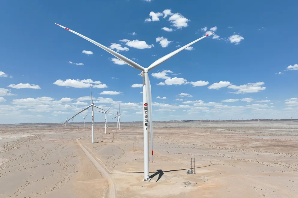 2022年以来,龙源电力锚定“新能源建设+生态治理”目标,在腾格里沙漠率先开展新能源基地项目建设,打造以沙漠、戈壁、荒漠为重点的大型风电光伏基地示范工程。