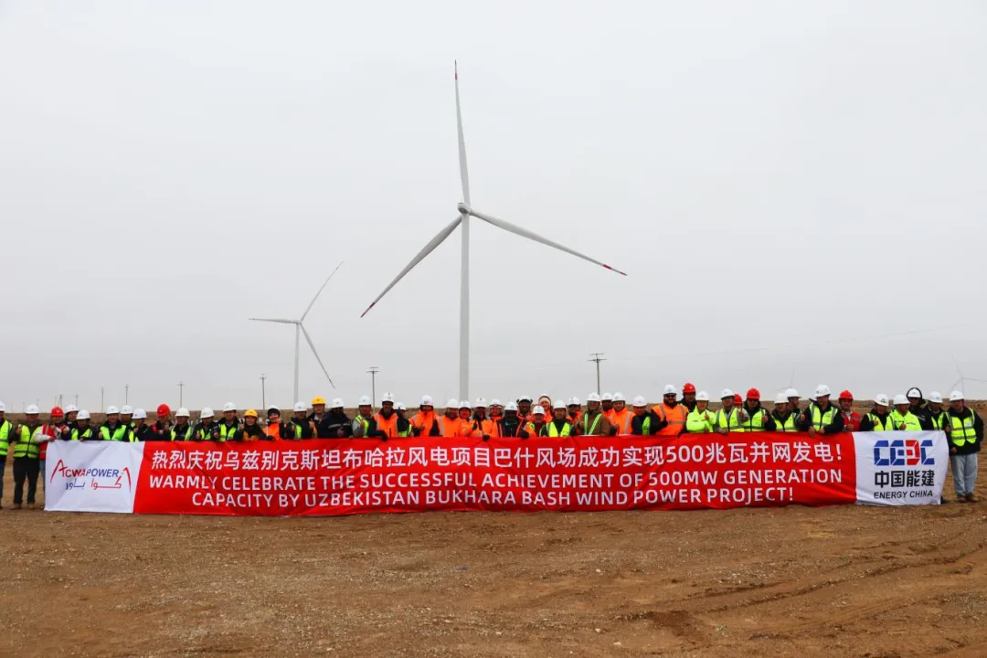 当地时间1月16日,由中国能建国际集团、浙江火电、华北院、中电工程国际公司共同承建的乌兹布哈拉风电项目巴什风场实现500MW全容量并网发电,标志着项目建设取得又一重大里程碑,为乌兹政府推进绿色能源发展注入了强劲动力。